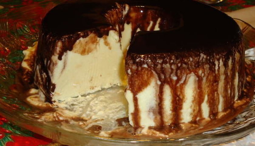 Gelado de creme com calda de chocolate