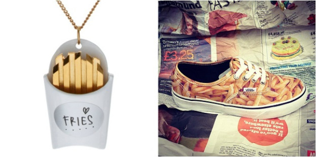 São colares, pulseiras, brincos, gravatas, sapatos - e tudo o que você puder imaginar - inspirados em fast foods e pratos deliciosos. Alguns deles, de tão realistas que são, chegam a dar água na boca! Portanto, cuidado ao usar uma dessas guloseimas fake, é capaz da fome bater e você, sem perceber, dar uma mordida em seu colar!