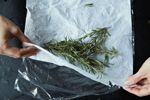Ao chegar do supermecado higienize suas verduras na água+solução clorada, segue bem e embrulhe com papel tolha antes de guardar dentro de um saco plástico de lacre hermético. Foto: Reprodução - Food52