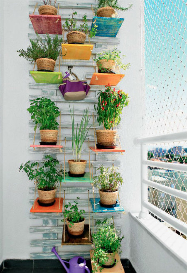 Horta suspensa na sacada