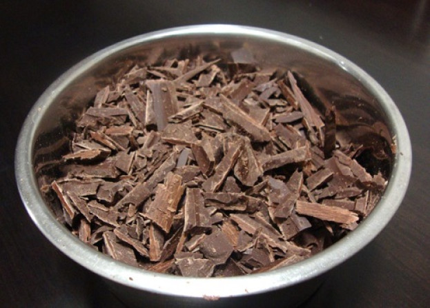 Corte o chocolate desejado (ao leite, meio amargo, amargo ou branco) em pedaços pequenos. Depois do chocolate picado, separe uma parte para temperar aproximadamente 40% do total do chocolate. Ex: para um 1 kg de chocolate cortado, será reservado 400 gramas para temperar. O restante do chocolate será derretido no microondas ou em banho-maria.