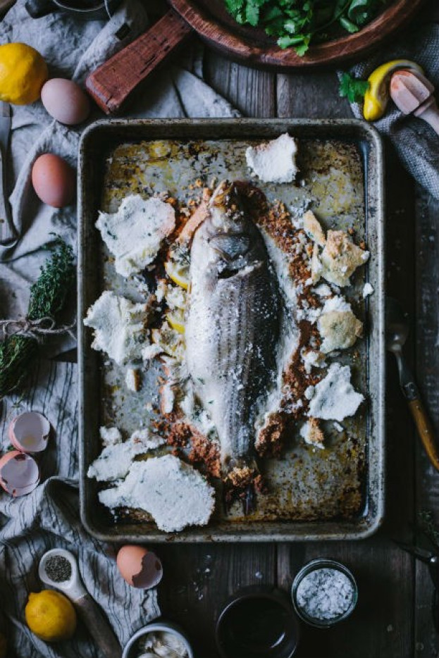 Outra técnica para peixes inteiros é assar na cama de sal. Utilize peixes com escama ou pele mais resistente, como carapau, tainha ou sardinha, para que o sal não penetre na carne. Com o peixe limpo, recheie o peixe com um pouco de manteiga. Faça uma cama de sal em uma assadeira, coloque o peixe, cubra com uma camada generosa de sal grosso e regue com um pouco de sal para facilitar o cozimento. Leve ao forno por 20 a 25 minutos. Retire com delicadeza!