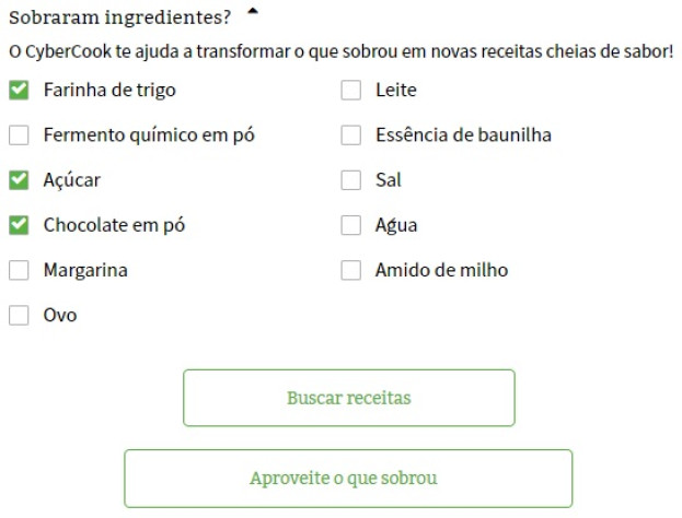 Fez uma receita e sobraram alguns ingredientes? Aproveite para criar algo novo com eles! O CyberCook criou uma função na assinatura premium chamada "aproveite o que sobrou", que pega todos os ingredientes citados na receita feita por você e, em forma de lista, permite que você selecione os que sobraram. Uma vez feito isso, o site te mostra diversas opções de receitas para você usar aqueles ingredientes e evitar desperdícios na cozinha. Demais, né?