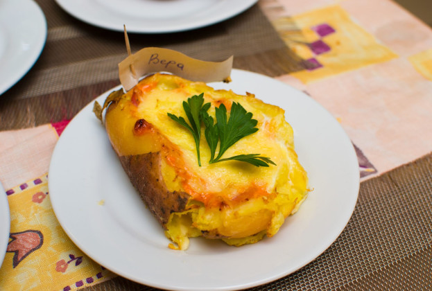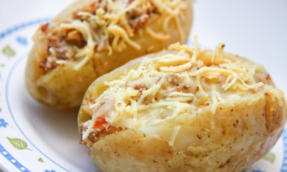 A batata recheada é muito fácil de fazer e os recheios podem ser os mais variados. Primeiro, você lava a batata, para cozinhar com casca e tudo. Faça uns buraquinhos com o garfo nas batatas e então as cozinhe a 180°C, até que estejam macias por dentro. Quando chegar ao ponto, espere esfriar, corte-as ao meio, retirando um pouco do interior da batata e então recheie com o que escolher!