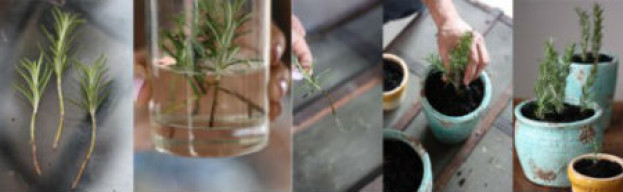 Do mesmo jeito que fez com o manjericão, você vai destacar alguns ramos e colocá-los em um copo com água. Depois que as raízes começarem a aparecer, transfira para um vaso com uma mistura de 2/3 de areia grossa e 1/3 de terra musgo. O alecrim não gosta de muita água então não precisa regar todos os dias, mas lembre-se de deixar em um local arejado e que tome bastante sol. Essa técnica serve para outros temperos, como salsinha, coentro e hortelã.