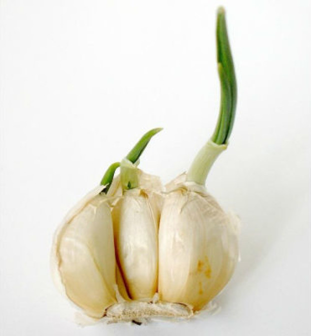 Aqui infelizmente não vamos ter novos bulbos de alho, mas você pode utilizar os brotos para temperar carnes, aves assim como guacamole e hommus ou simplesmente para enfeitar pratos. Para germinar, basta destacar os dentes de alho e coloca-los em um recipiente com água. Deixe em um local exposto ao sol, e troque a água a cada 2 dias.