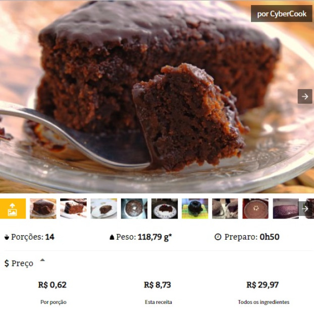 Veja abaixo como aparecem os preços da clássica receita de Bolo de Chocolate: