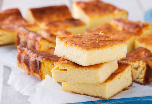 O leite de coco faz com que o bolo fique com um leve gosto da fruta, mas também ajuda a dar cremosidade à massa.