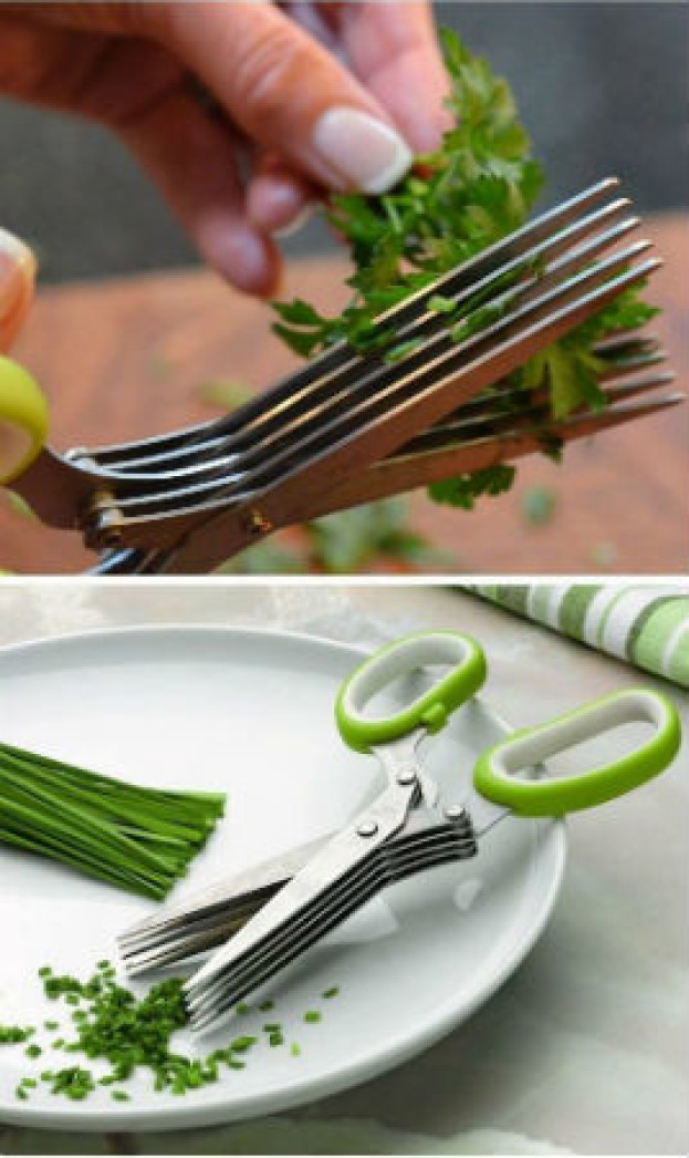 Para aqueles que não tem muita habilidade em cortar ervas com as facas, essa tesoura pode ser uma mão na roda na hora que você precisa de agilidade na cozinha. Podem parecer um pouco estranhas, mas com certeza fazem o trabalho ficar mais fácil!